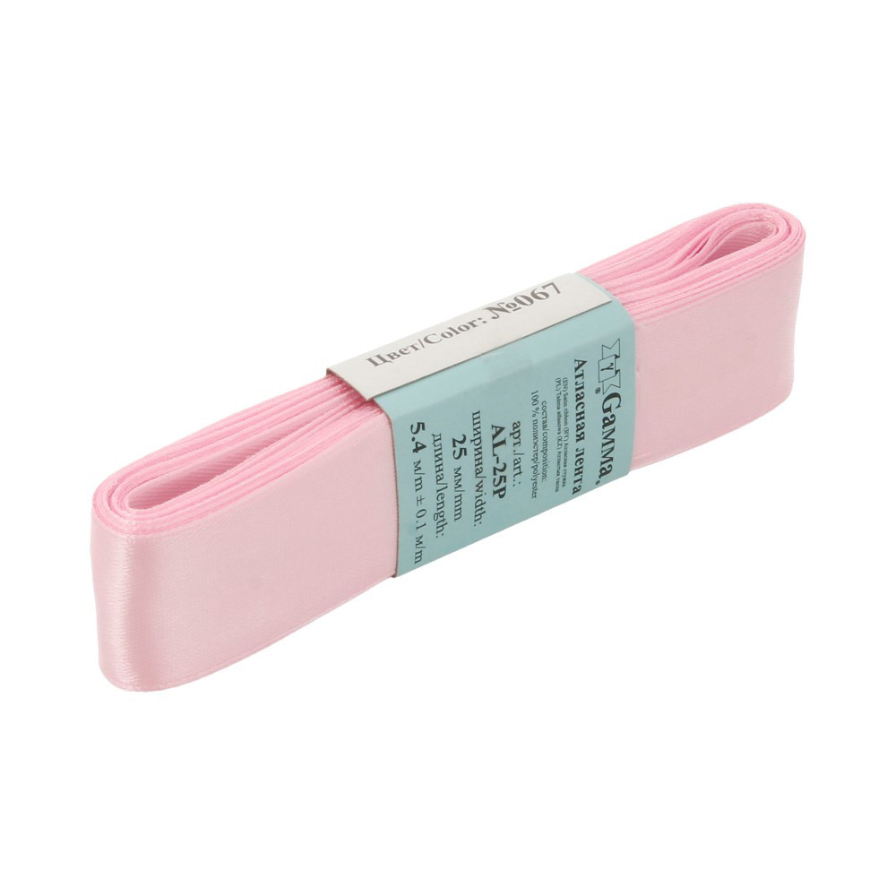 Лента атласная 25 мм ( 1 ") "Gamma" ФАСОВКА 5.4 м №067 св-розовый