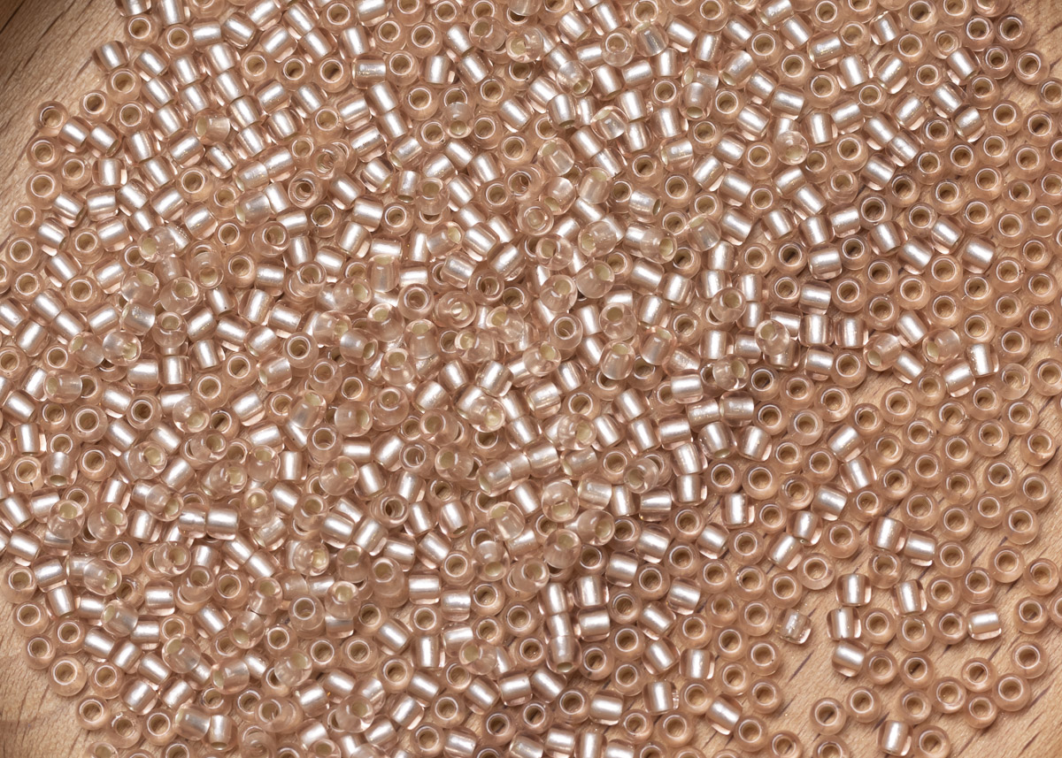 Бисер Япония круглый 11/0 10г 0031F розалин матовый, серебряная линия внутри