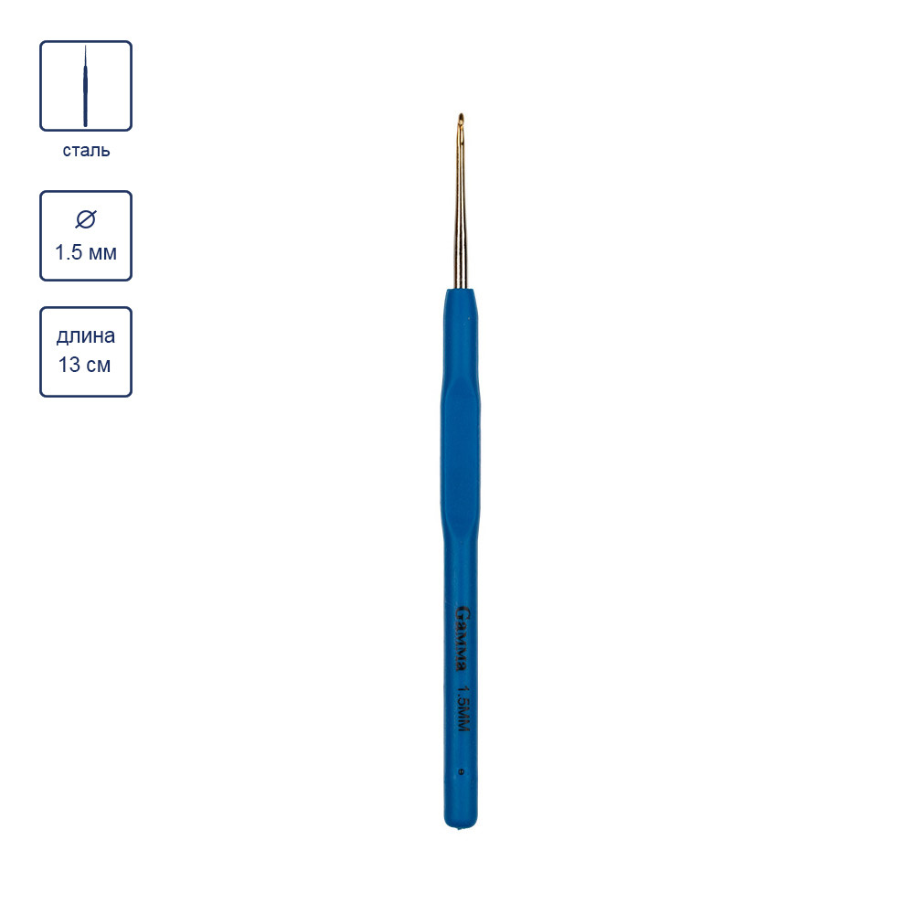 Для вязания " Gamma" RCH крючок с прорезин. ручкой сталь d 1. 5 мм 13 см в блистере .