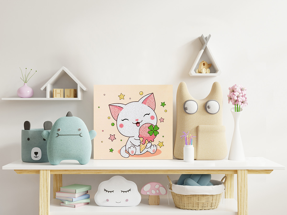 Кристальная ( алмазная) мозаика " ФРЕЯ" ALBP- 326 постер " Котенок с мороженым" 20 х 20 см