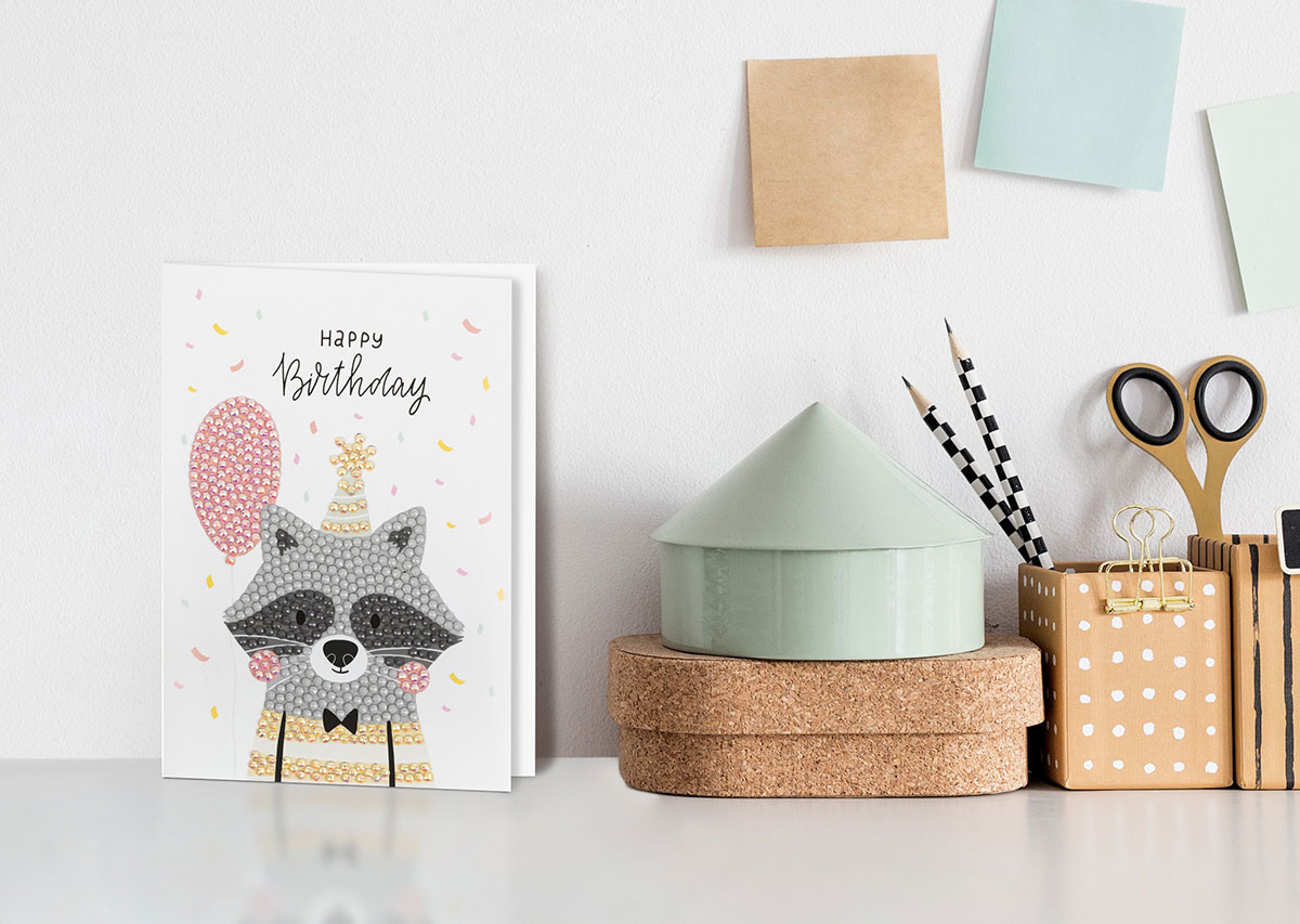 Кристальная ( алмазная) мозаика " ФРЕЯ" ALVO- 604 открытка " Счастливый енот" 10. 5 х 14. 8 см