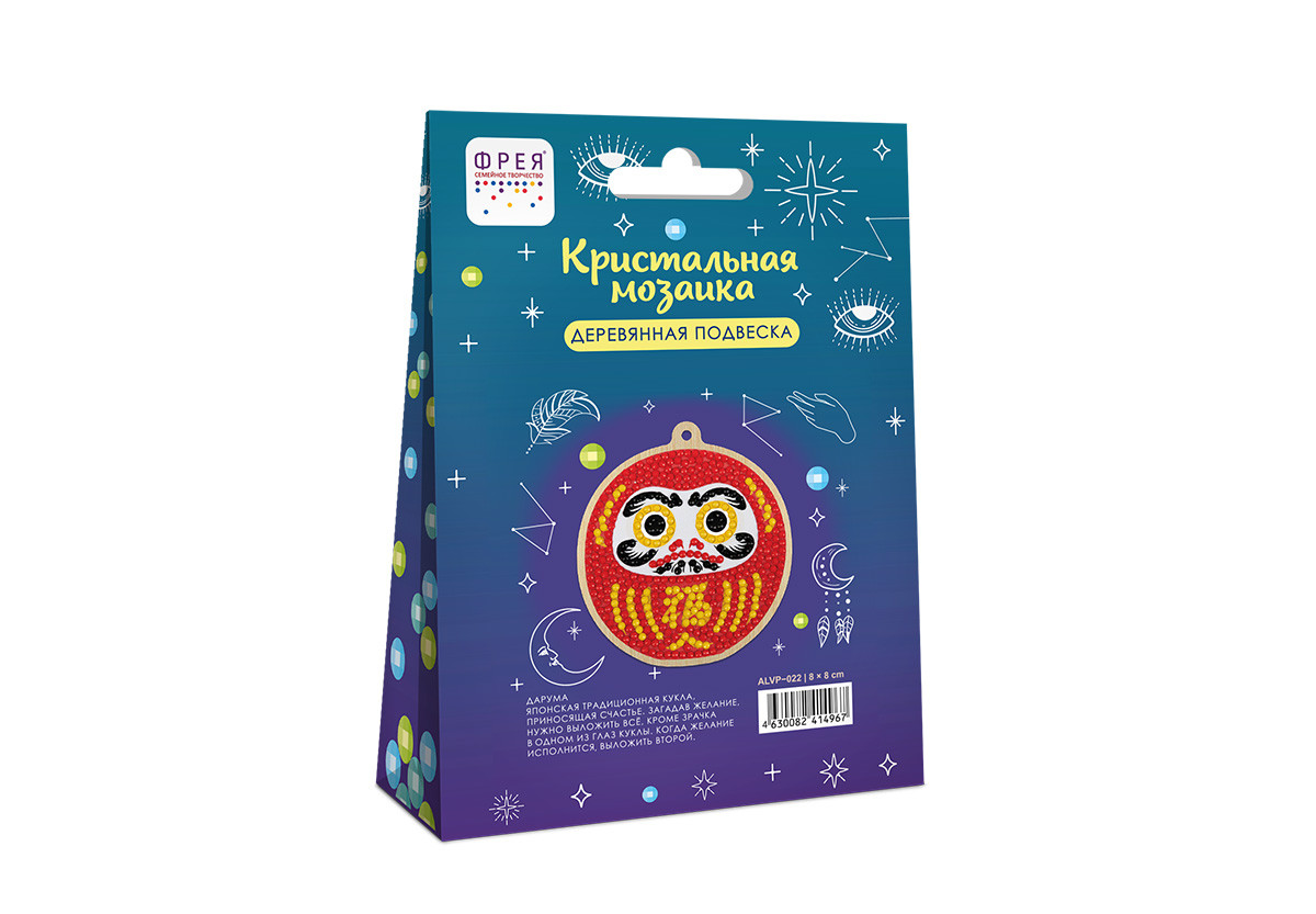 Набор по изготовлению подвески в технике " Кристальная/ алмазная мозаика". Выполнение работы не требует специальных навыков, выкладывать брелок очень легко и быстро. Стразы наклеиваются поверх изображения со схемой на уже нанесенный клеевой слой. Увлекательный процесс создания изделий поможет развить мелкую моторику и повысить концентрацию внимания. Амулеты и талисманы имеют особое значение в жизни каждого человека. Они могут приносить удачу, защищать от негативных воздействий и помогать достигать поставленных целей. Создавая свой собственный амулет или талисман, вы можете привлечь в свою жизнь то, что вам нужно. Дарума - японская традиционная кукла, приносящая счастье. Загадав желание, нужно выложить всё, кроме зрачка в одном из глаз куклы. Когда желание сбывается, Даруме довыкладывают второй глаз. В набор ТМ ФРЕЯ " Кристальная мозаика" входит: - деревянная основа с клеевым слоем и защитной плёнкой, - стилус и восковая подушечка,- стразы: 4 цвета, запас более 30%,,- декоративный шнур,- картонный лоток, - инструкция. Тип выкладки: полнаяУровень сложности: 1 из 3Размер готового изделия: 8 х 8 смРазмер упаковки: 10, 5х2, 5х14, 5 см. Набор сертифицирован для детского творчества. Сообщить о неточности в описании